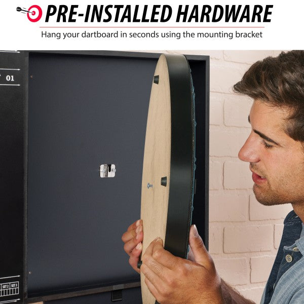 Has a built in scoreboard and preinstalled dartboard mounting bracket