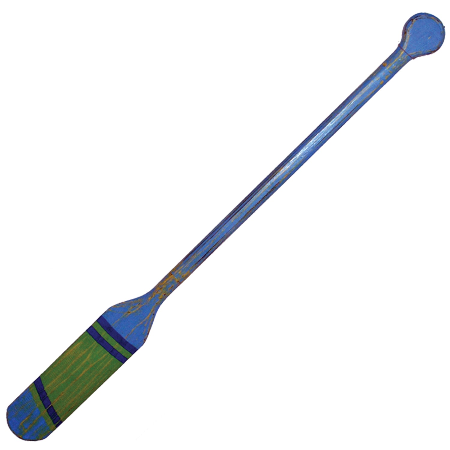 Simple and yet charming, this hand-painted acacia wood outdoor wall art sign with a blue and green oar paddles toward your poolside or patio entertaining area.