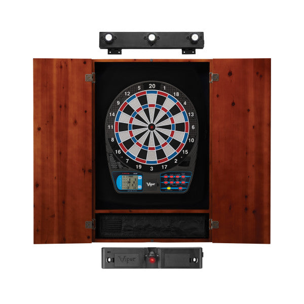 Viper 787 Electronic Dartboard, Metropolitan Cinnamon Cabinet, Throw Line Light & Shadow Buster Dartboard Light Bundle